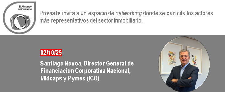 El próximo jueves, 2 de octubre, a las 13:00 horas celebraremos un encuentro de trabajo con D. Santiago Novoa, Director General de Financiación Corporativa Nacional, Midcaps y PYMEs del Instituto de Crédito Oficial (ICO) con quien podremos intercambiar ideas y conocer las oportunidades de financiación para impulsar la construcción de vivienda asequible.